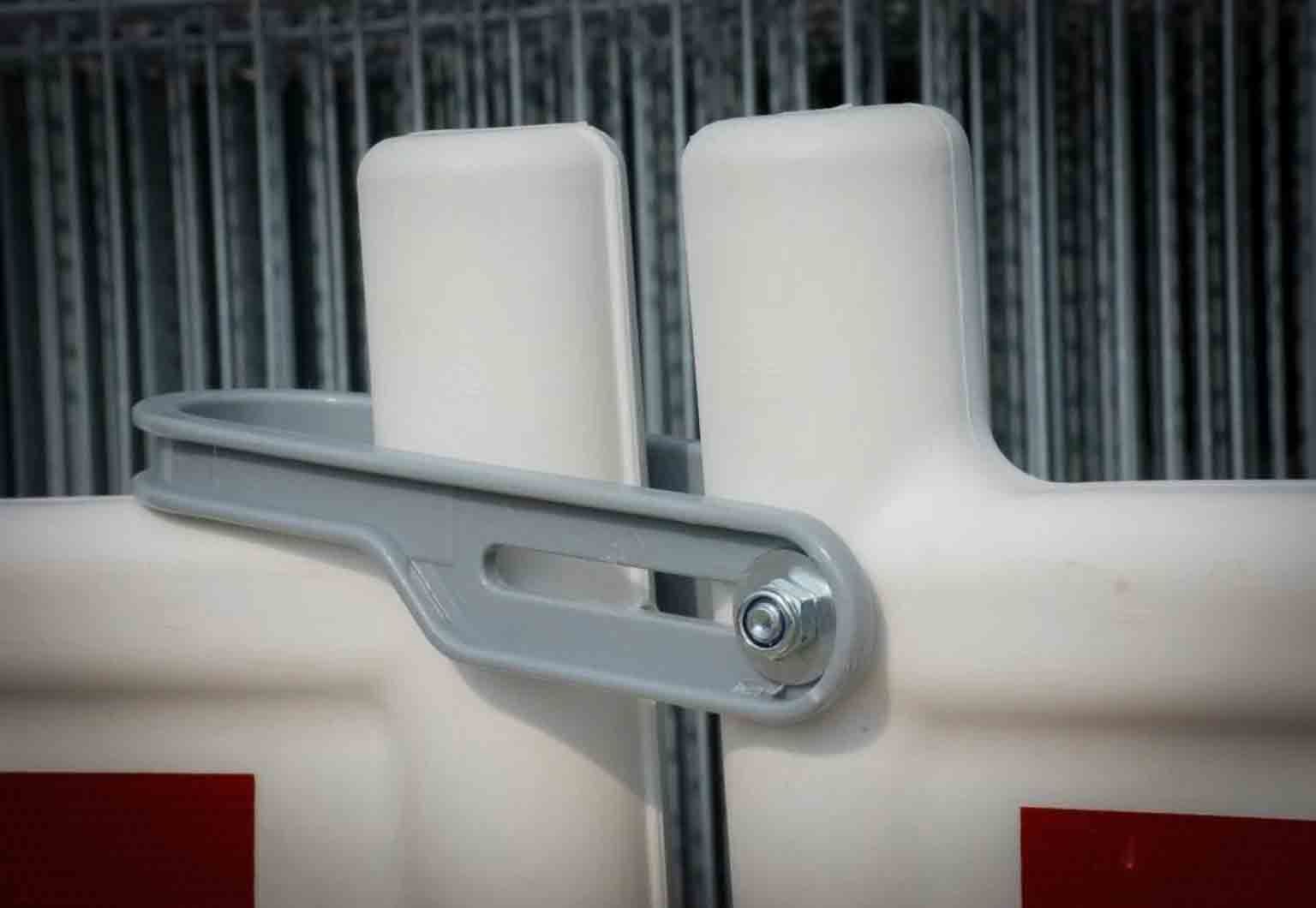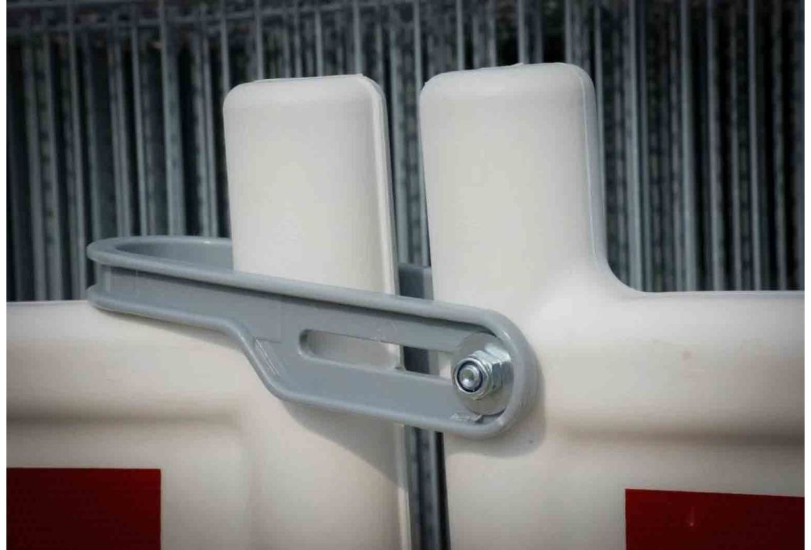 De beugel/sluiting voor kunststof dranghek HD is ontworpen voor het veilig en stevig koppelen van kunststof dranghekken. Deze robuuste sluiting zorgt ervoor dat de dranghekken stabiel aan elkaar verbonden blijven, zelfs bij intensief gebruik of slechte weersomstandigheden. Ideaal voor het creëren van een doorlopende, veilige afzetting bij evenementen, bouwplaatsen en verkeersgeleiding.