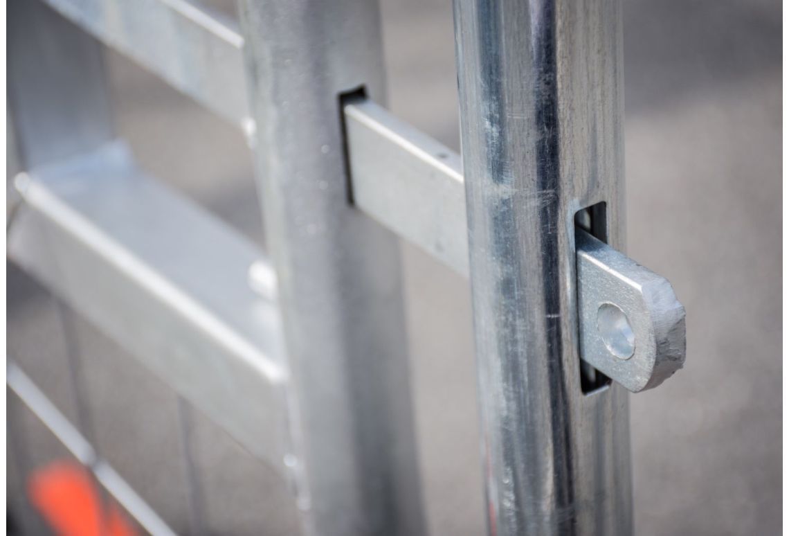 De gaasmat van de bouwhek deur heeft een standaard maaswijdte. Wil je voorkomen dat ongenode gasten de deur als ladder gebruiken en eroverheen klimmen, dan is er een anti-climb bouwhek deur.