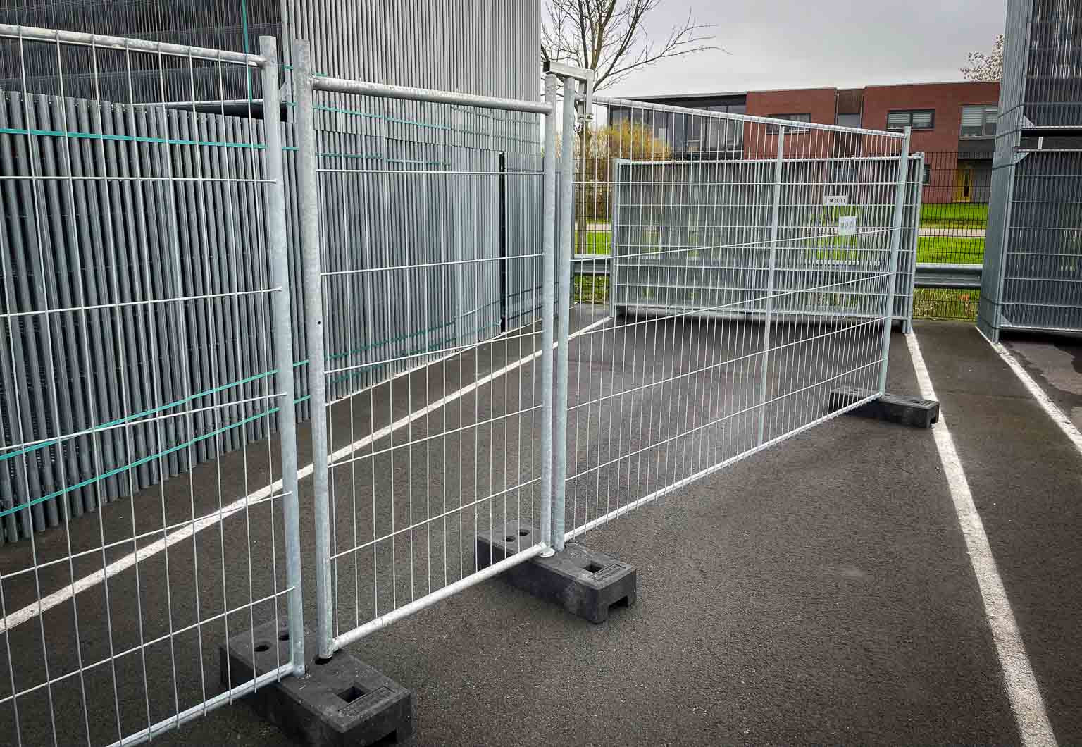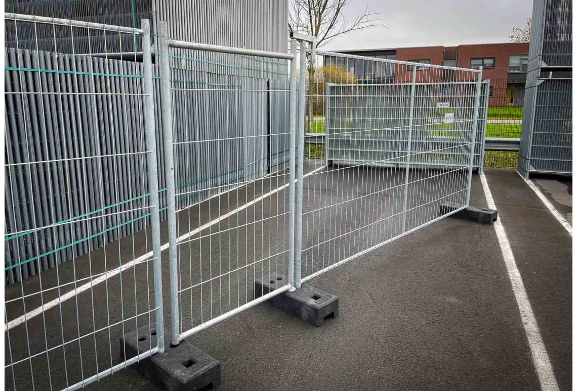 Stabiliteit: een bouwhekdeur vormt vaak het kwetsbaarste punt van een tijdelijk hekwerk, omdat er beweging optreedt bij het openen en sluiten. Door bouwhekschoren te plaatsen aan de hekken naast de deur, blijft de constructie stevig en stabiel. Zo voorkom je dat het hekwerk scheeftrekt of omvalt, vooral bij windbelasting of intensief gebruik.