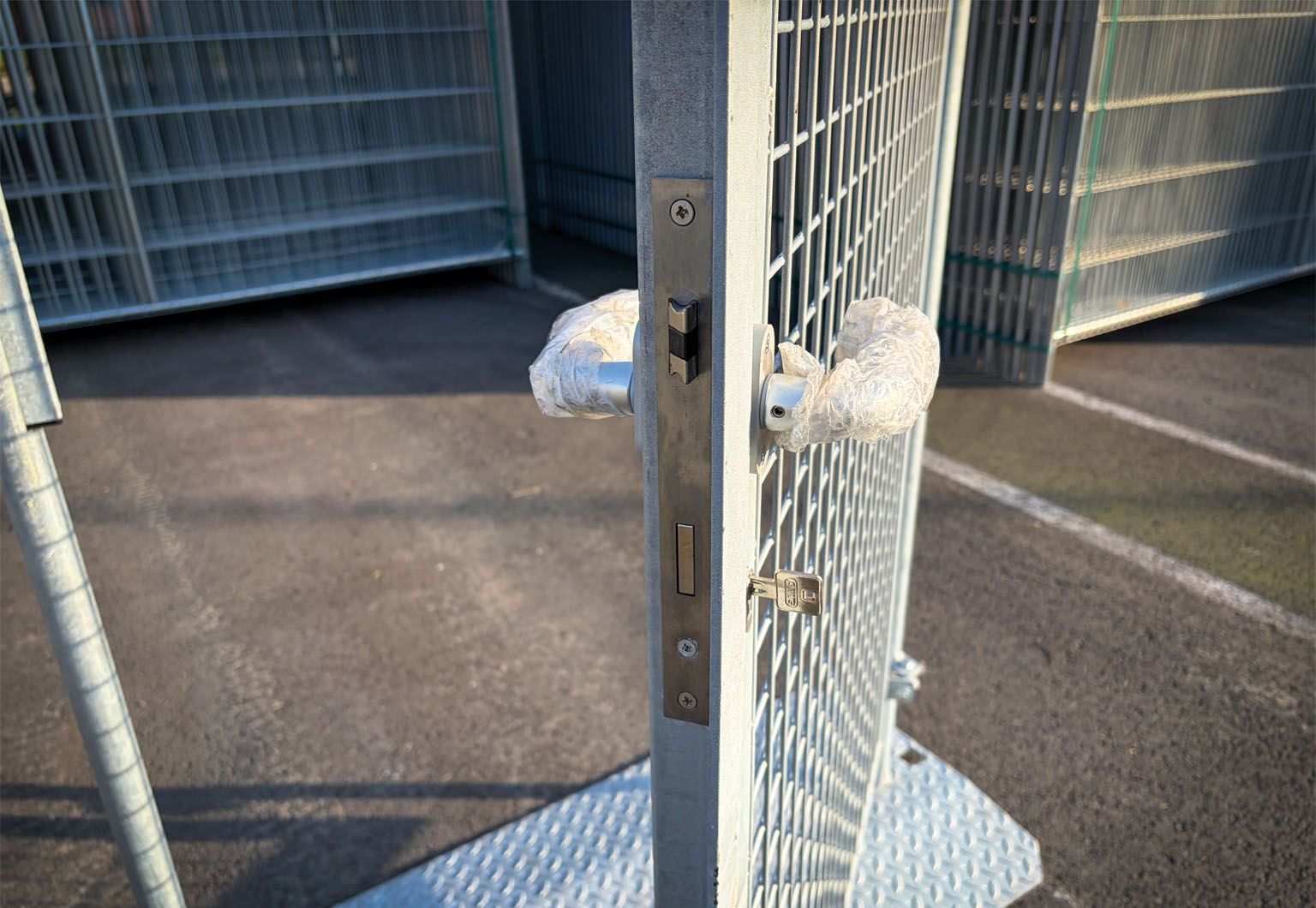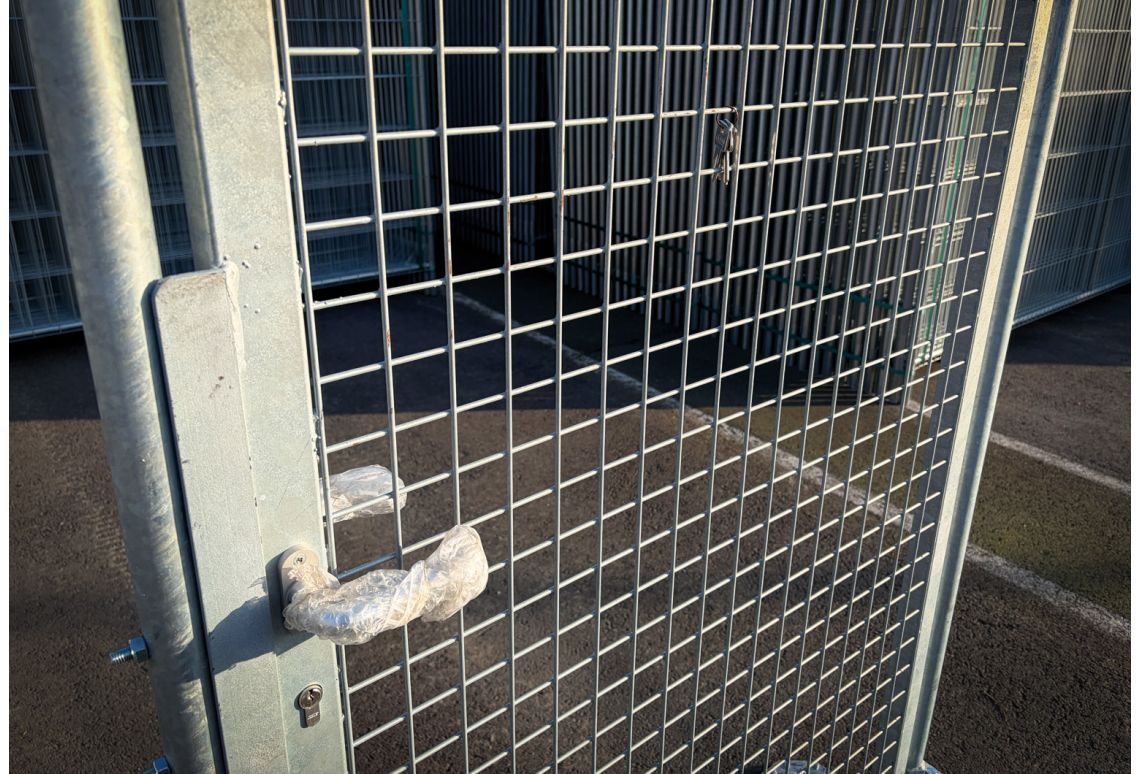 De bouwhek poort biedt een veilige en handige doorgang in tijdelijk hekwerk. Deze poort is speciaal ontworpen om eenvoudig toegang te verschaffen tot een afgesloten bouw- of evenemententerrein. Dankzij de stevige constructie en gebruiksvriendelijke werking is deze poort ideaal voor medewerkers en bezoekers.