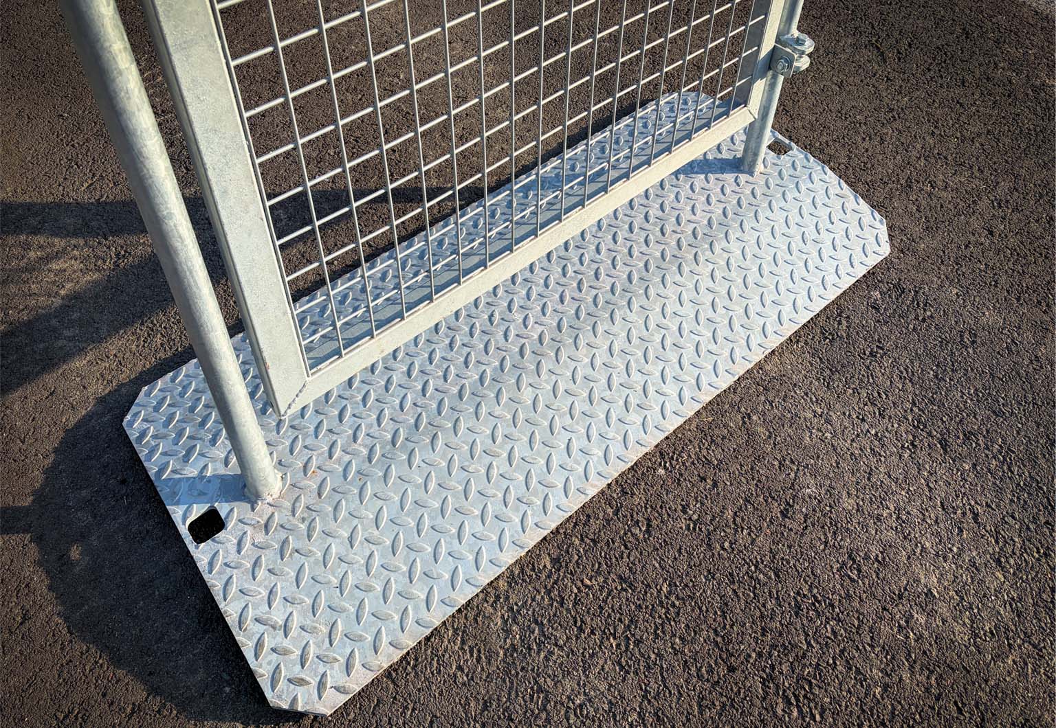 Openingen in voetplaat voor bouwhekken