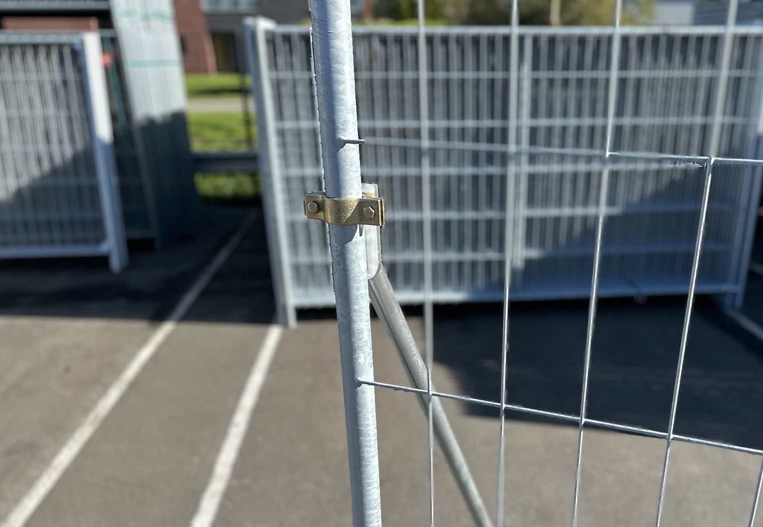 De diameter van de bouwhekklem is 42 mm en past precies om de staander van een standaard type bouwhek.