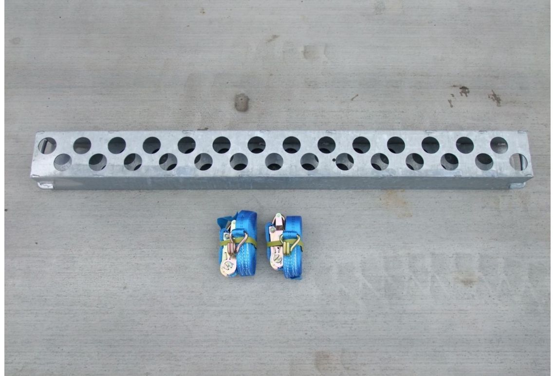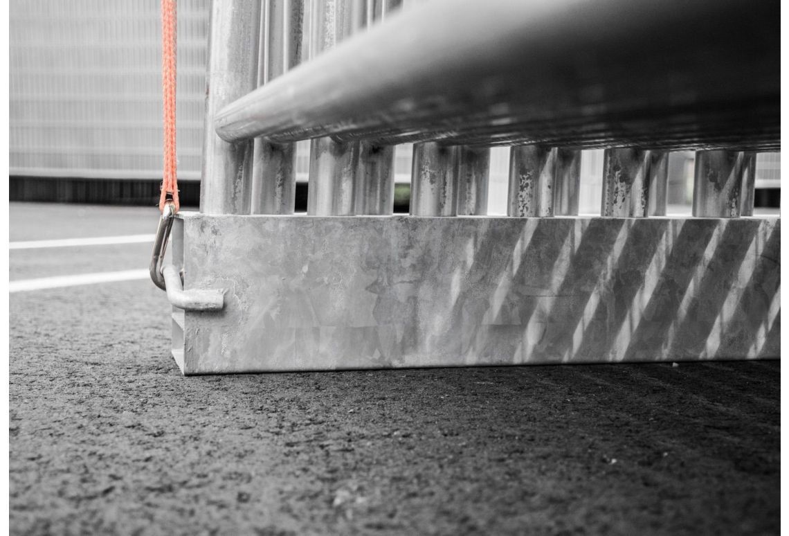 Voor het opslaan en transport van bouwhekken is deze bunkerset een voordelig alternatief voor een groter traditioneel laadplatform. De bunkerset bestaat uit een bunker van verzinkt staal en twee spanbanden om het geheel te kunnen fixeren.