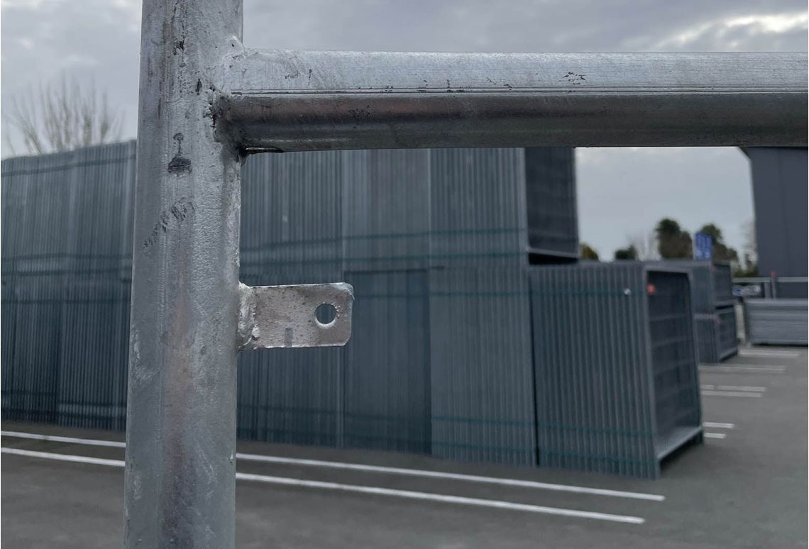 Zorg dat de wind geen grip op je tijdelijk hekwerk kan krijgen. Het reclamepaneel die in het frame zit, is een ‘dicht’ paneel waar geen wind heen kan. Plaats bouwhekschoren wanneer je er niet helemaal zeker van bent of het hekwerk stevig blijft staan bij een goeie Hollandse wind. Alleen zo voorkom je dat de wind er geen grip op kan krijgen en de hele rij bouwhekken omver trekt.