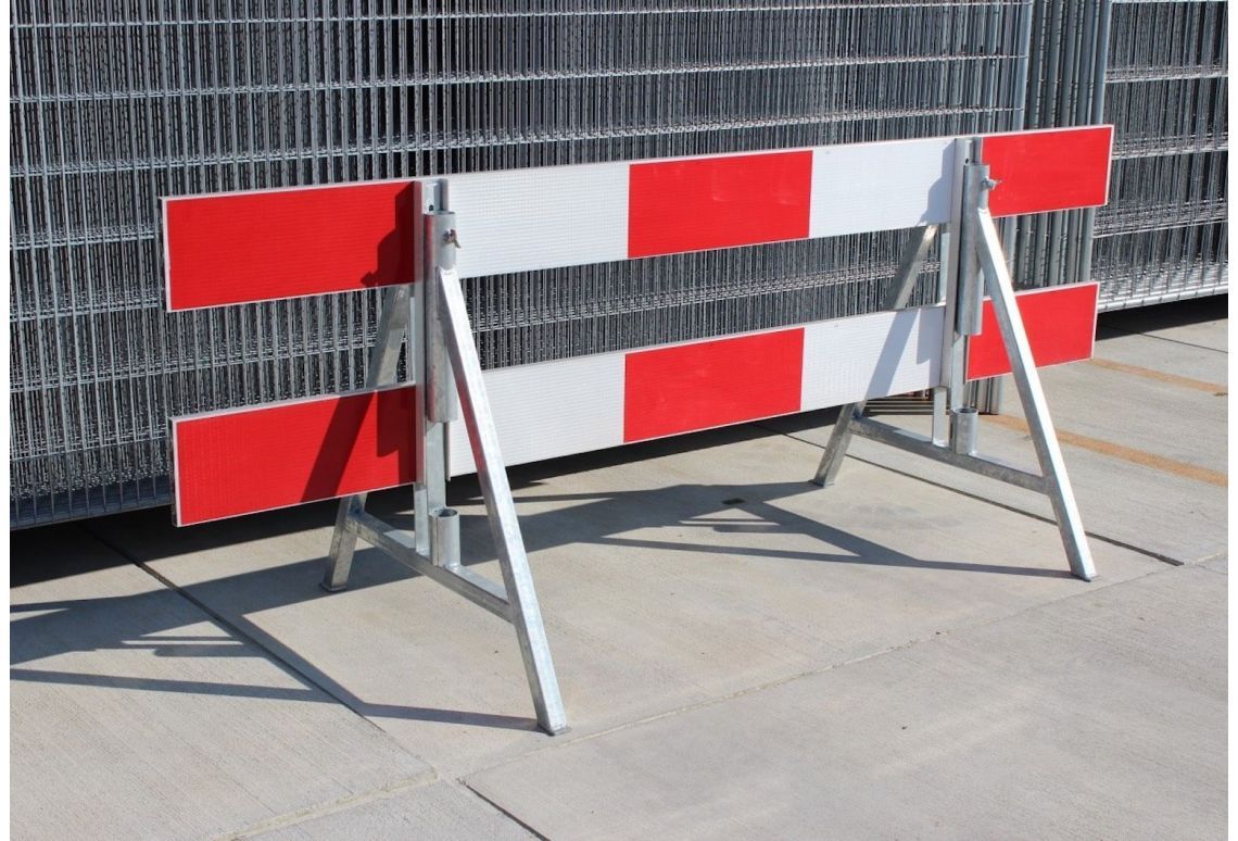 Een aluminium schrikhek is handig om tijdelijk te waarschuwen voor een gevaarlijke locatie op een bouwplaats, een evenemententerrein of een stuk openbare weg.